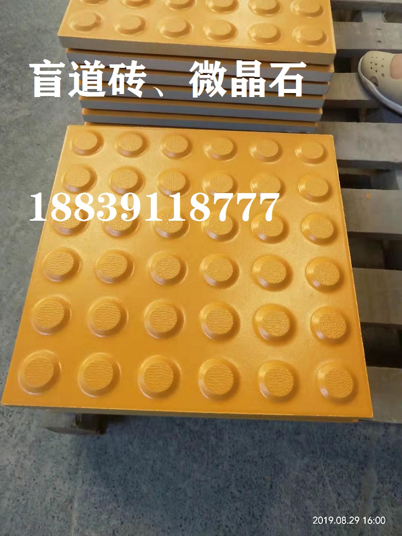 10元一塊,來電咨詢18839118777,中冠盲道磚盲道磚是為盲人安全提供的行路方便道路設(shè)施。盲道磚由三類磚鋪就,一類是條形方向引路磚,引導(dǎo)盲人放心前行,稱為行進(jìn)盲道磚,或盲道方向引路磚;一類是帶有圓點(diǎn)的提示磚,提示盲人前面有障礙,該轉(zhuǎn)彎了,稱為提示盲道磚,或盲道方位引路磚;還有一類就是盲道危險(xiǎn)警告引路磚,圓點(diǎn)較大的,就是警視不要超越,前面危險(xiǎn)。